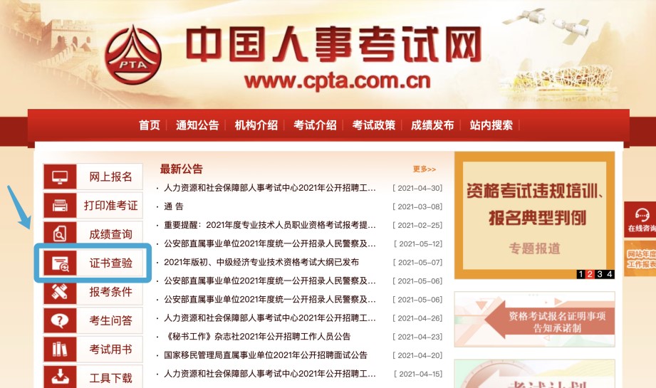 公路水运工程试验检测专业技术人员职业资格考试电子证书下载问题 问:公路水运工程试验检测专业技术人员职业资格考试合格人员如何下载电子证书? 答:请登录中国人事考试网(www.cpta.com.cn)进行查询验证或下载打印。具体操作可参考全国专业技术人员职业资格证书查询验证系统(持证人员查询)(网址