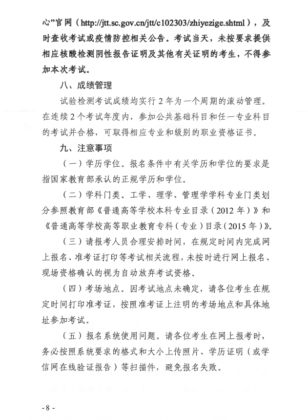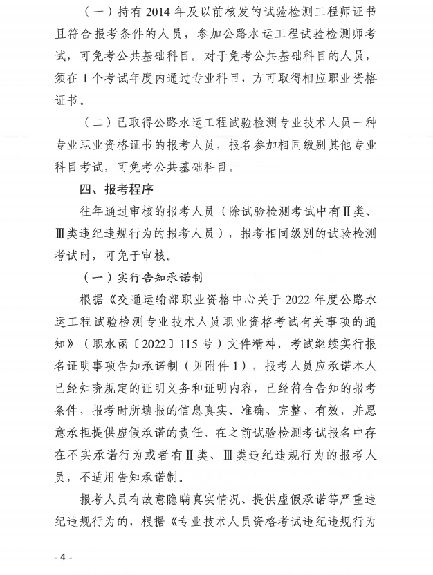 附件1:公路水运工程试验检测专业技术人员职业资格考试报考须知、承诺制告知书、报考承诺书